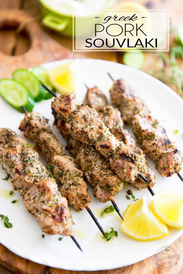 “These Greek Pork Souvlaki are very easy to make and taste so crazy good, you’ll want them to keep your outdoor grill occupied all summer long! “. Recipe: TheHealthyFoodie.