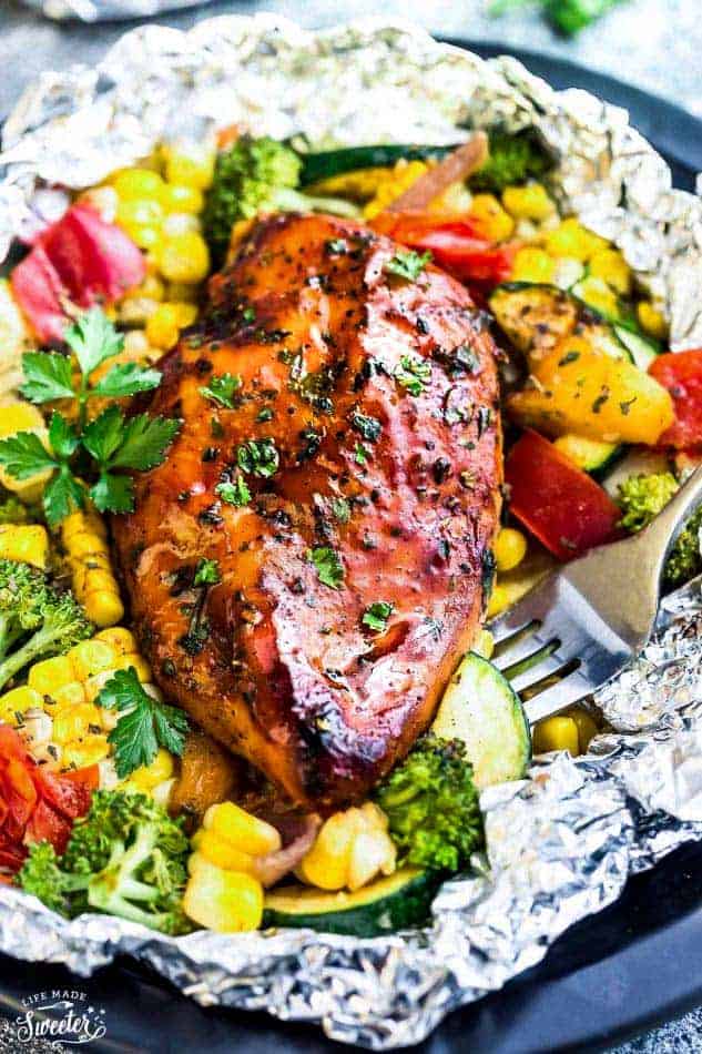 “Barbecue Chicken Foil Packets are the perfect easy dinner for summer. They can be baked or grilled with practically no clean-up! Made with tender chicken coated in a sweet and tangy BBQ sauce with your favorite veggies. Options for Whole30, low carb, keto and paleo.”. Recipe: LifeMadeSweeter.