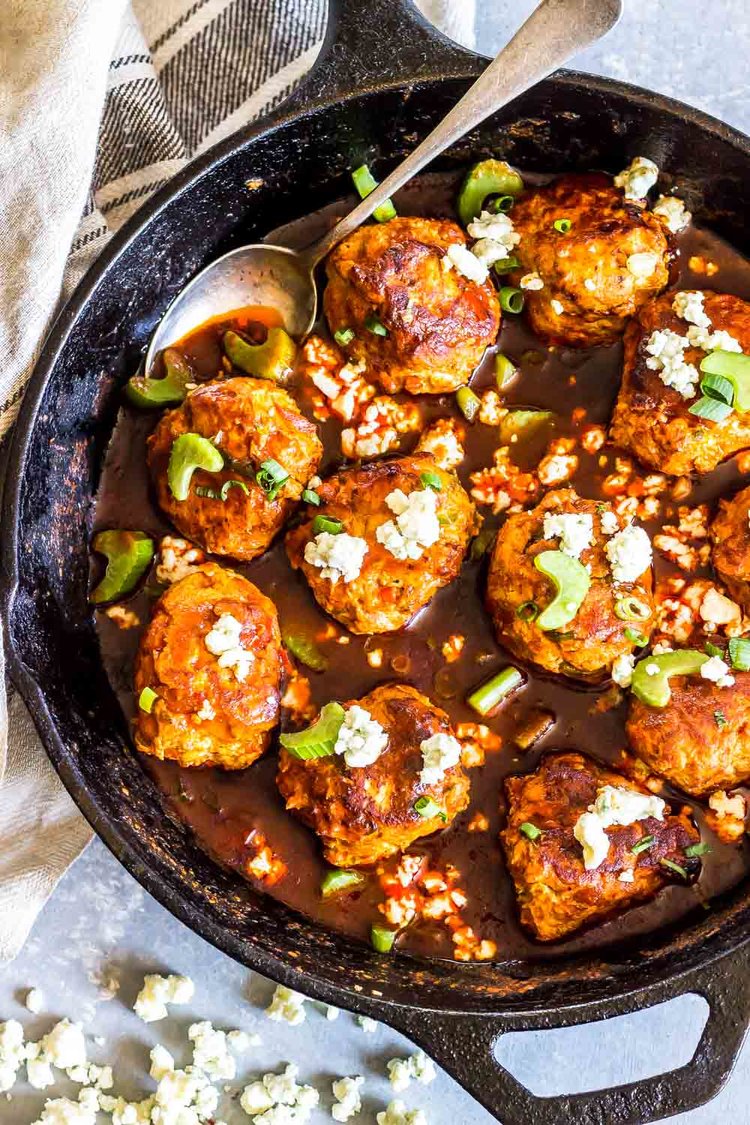 “These Keto Buffalo Chicken Meatballs are delicious dunked into a keto blue cheese dressing or ranch! Wrap them in lettuce cups for an easy meal.”. Recipe: CastIronKeto.