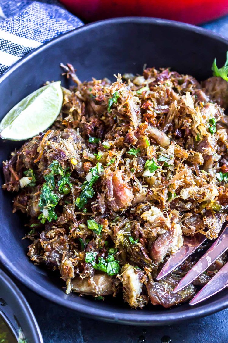 “These crispy Keto Carnitas are the perfect protein option for a keto diet as the ratio is about 75% fat to 25% protein. Feel free to scale the recipe to make more or less, we vote for more since this is a great meal prep option to have on hand for easy meals.”. Recipe: CastIronKeto.
