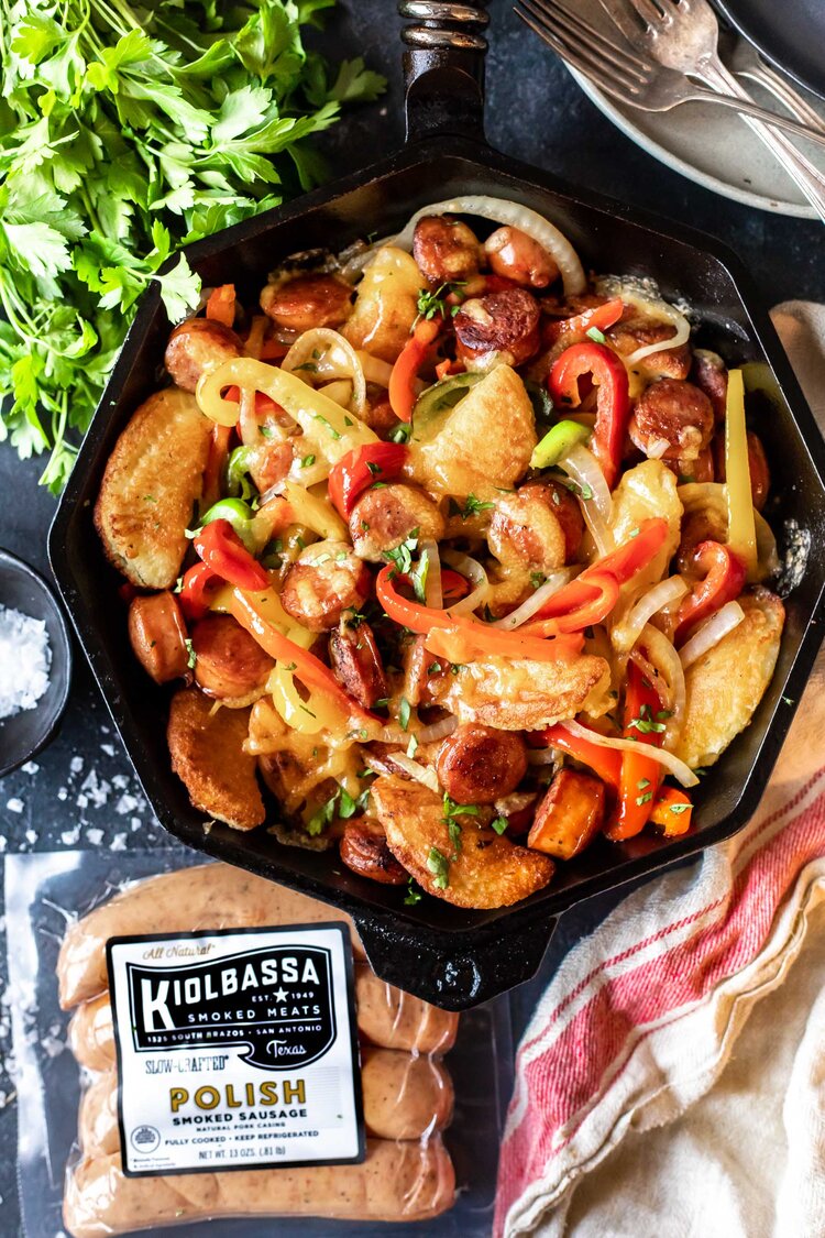 “This Keto Kielbasa Pierogi Skillet is an easy skillet dinner that’s packed full of flavor!”. Recipe: CastIronKeto.