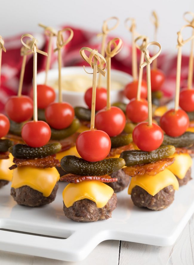 “This Low Carb Burger Bites Recipe is fun to make and serve at parties! Offer these juicy meatballs appetizers with secret sauce on game day.”. Recipe: ASpicyPerspective.