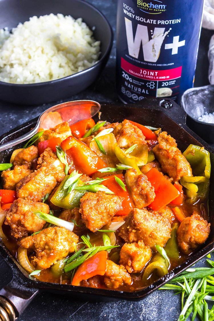 “This Easy Keto Sweet and Sour Chicken is totally better than takeout with no refined sugar, junky oils, or gross additives. Just clean ingredients and 50 minutes is all you need!”. Recipe: CastIronKeto.