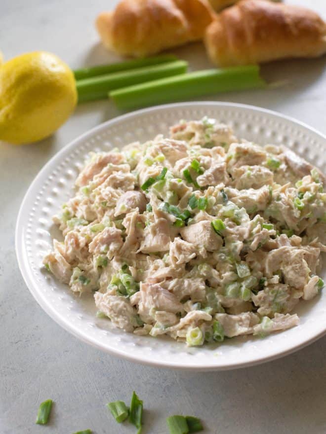 “The best classic Chicken Salad recipe is flavorful with simple ingredients. Chicken, celery, mayonnaise, green onions, and a little lemon juice make this salad taste like heaven. Feel free to add in whatever you want but this is great just as it is! You can eat this as a sandwich or for a low-carb and Keto friendly version eat it in lettuce wraps or by itself.”. Recipe: The-Girl-Who-Ate-Everything.