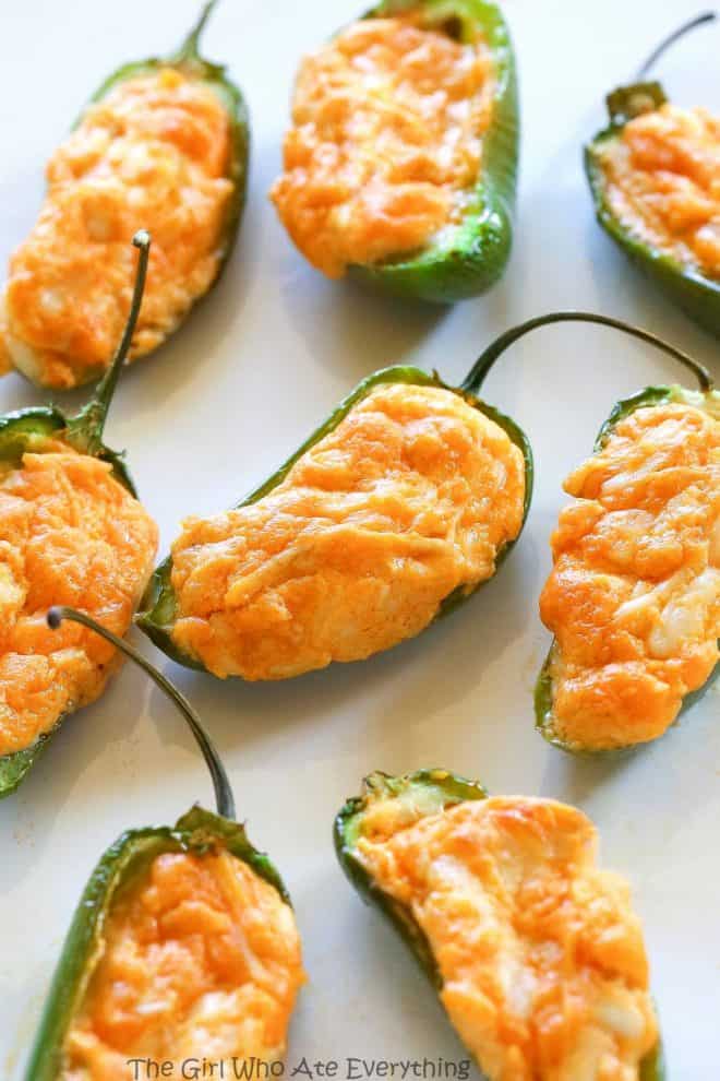 “Think buffalo chicken dip meets jalapeno poppers. These Buffalo Chicken Jalapeno Poppers are the perfect game food!”. Recipe: The-Girl-Who-Ate-Everything.
