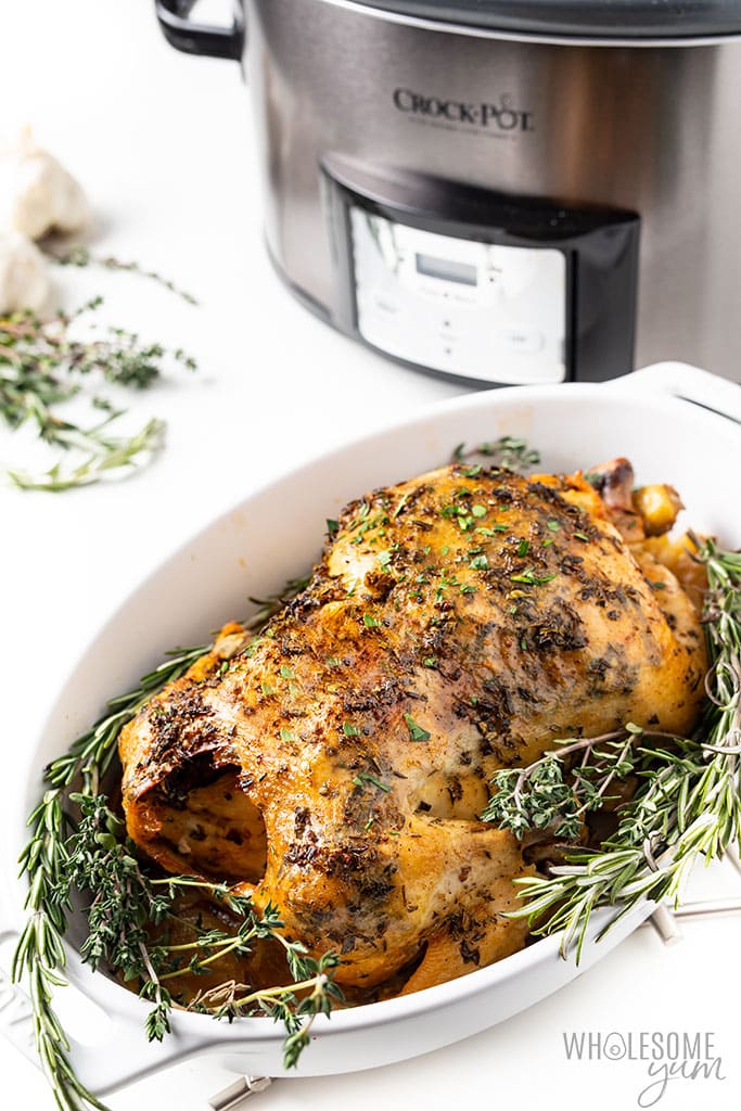 CROCK-POT WHOLE CHICKEN RECIPE WITH GARLIC HERB BUTTER