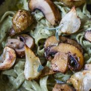 “This recipe is an homage to the pasta recipes that show up on food magazine covers every spring. You know the ones: they feature a bowl of pasta flecked with herbs and golden chicken—and smiling, painfully chic people gathered around a picnic table on a hillside, all bathed in dappled sunlight.” Recipe: HappyBodyFormula.