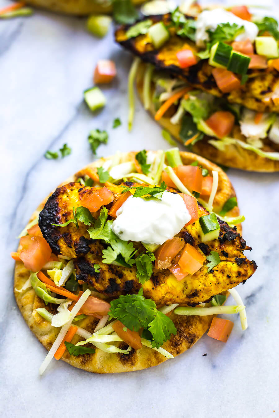 “These Tandoori Chicken Naan Burgers are a fun 30-minute dinner idea that’s perfect for the BBQ and made using a simple, homemade Indian-inspired spice mix!” Recipe: TheGirlOnBloor.