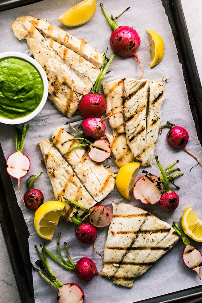 “This grilled barramundi is an easy summer recipe. With fresh spring radishes and a tasty, peppery radish top pesto.”. Recipe: LifeAsAStrawberry.