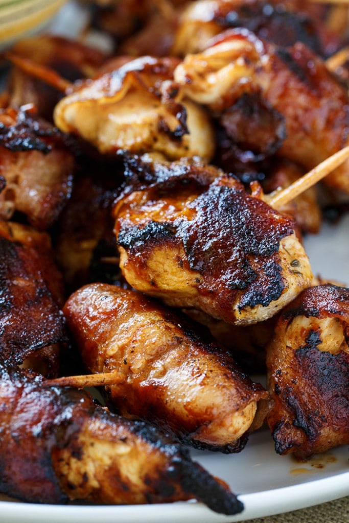 “Kick off BBQ season with these BBQ Bacon Chicken Bites. They’re perfect as an appetizer or main dish and are made from only 4 ingredients. They’re salty, spicy and just the thing to serve at your next cookout. They taste even better dipped in ranch dressing. Heavenly!”. Recipe: SpicySouthernKitchen.
