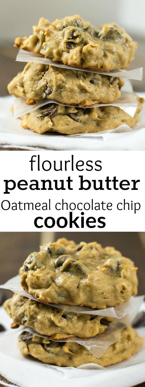 “These flourless peanut butter oatmeal chocolate chip cookies are thick, chewy, gluten free, and dairy free!” Recipe: BuildYourBite.