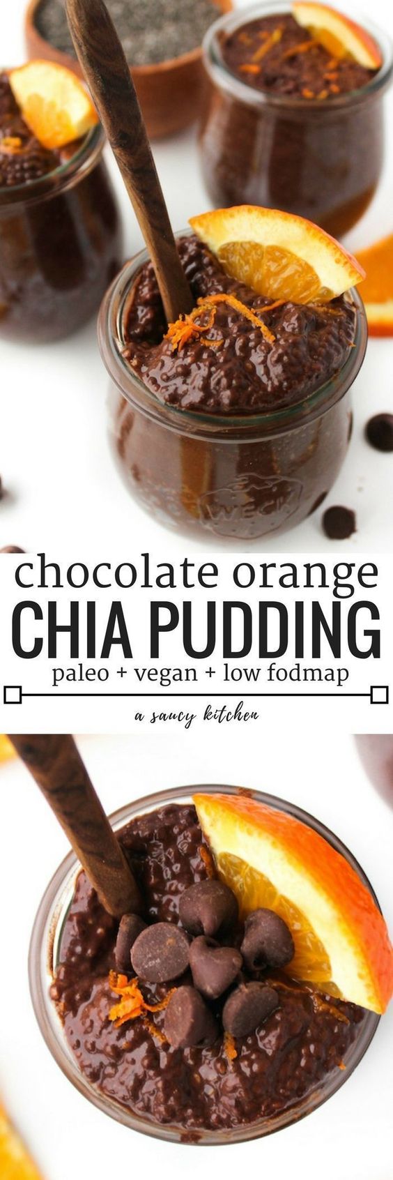“This Chocolate Orange Chia Pudding can be whipped together in a pinch and is perfect for breakfast and dessert alike. | Paleo, Vegan, Low FODMAP” Recipe: ASaucyKitchen.