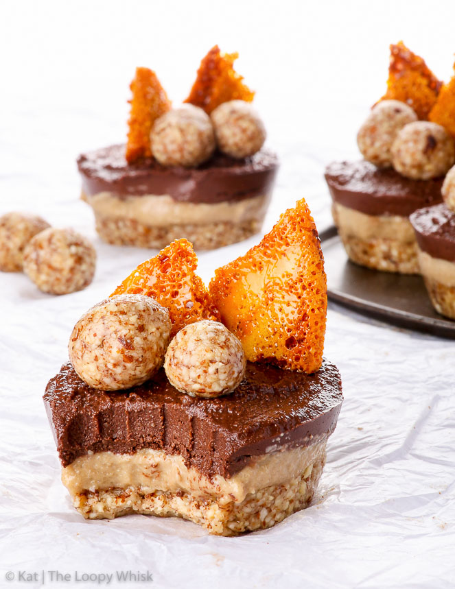 “Crunchy crust meets creamy coffee and chocolate layers in these raw vegan chocolate coffee cheesecake bites. Aside from being dangerously delicious, they’re almost too pretty to eat and super simple to make, as well. Once you taste this raw vegan dessert without coconut oil (!) you’ll want to make it again and again. And again.” Recipe: TheLoopyWhisk.