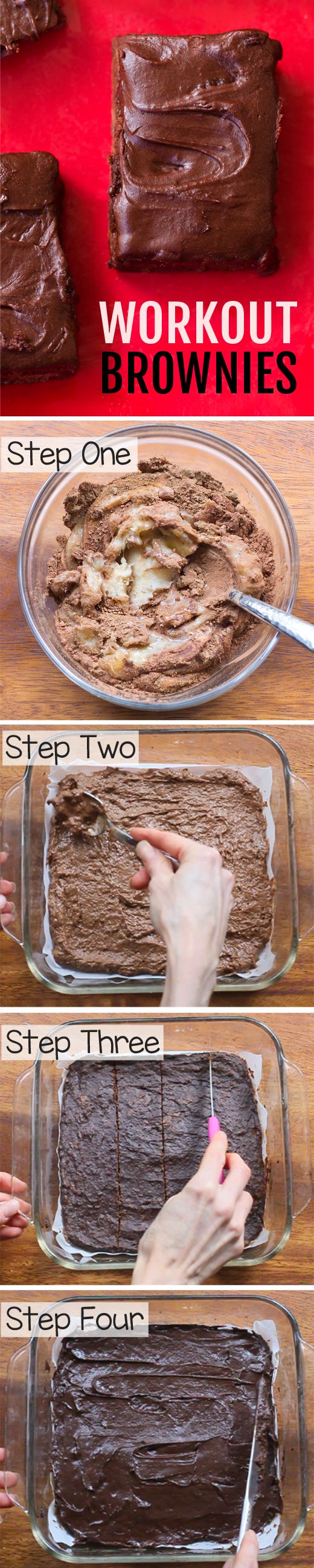 “These secretly-good-for-you chocolate workout brownies are high in protein, gluten-free, oil-free, vegan, and they can even have NO added sugar.” Recipe: ChocolateCoveredKatie.