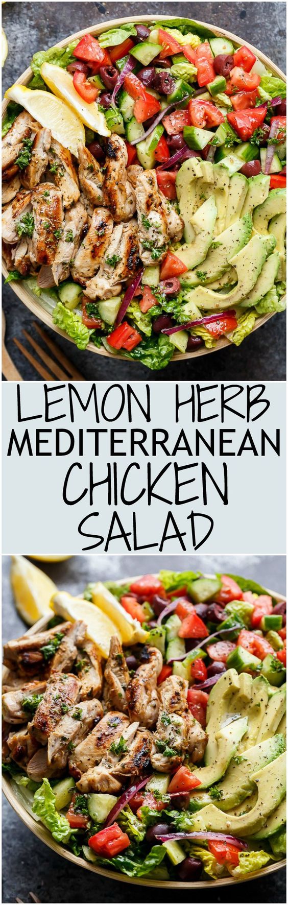 “This Grilled Lemon Herb Mediterranean Chicken Salad recipe is as closest to perfect as you can get! Full of Mediterranean flavours: olives, tomatoes, cucumber, avocados, and chicken for a complete meal in a salad bowl!” Recipe: CafeDelites.