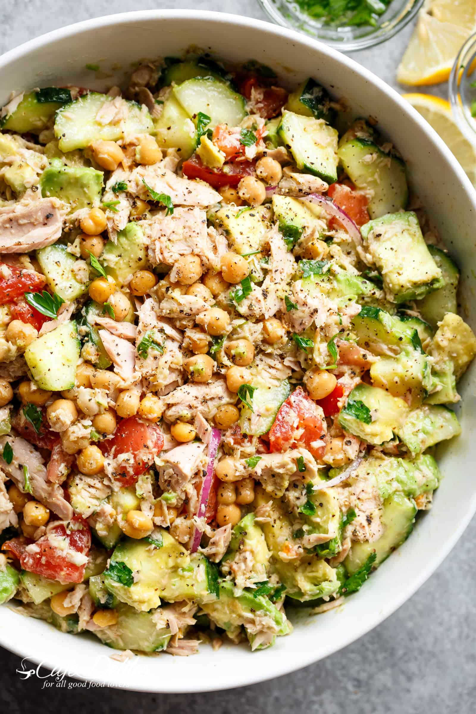 “Healthy and filling, this Tuna Salad is not only packed with amazing flavours, it is ALSO a bowl full of protein, fibre and healthy fats! Have it for lunch or dinner, as a side or main dish, this tuna salad is especially perfect in hunger emergencies.” Recipe: CafeDelites.