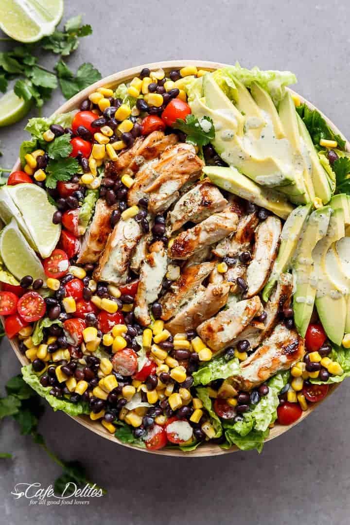 “Put a spin on a southwestern salad with this chili lime southwestern chicken salad with a low fat and creamy cilantro chili lime dressing that doubles as your marinade!” Recipe: CafeDelites.