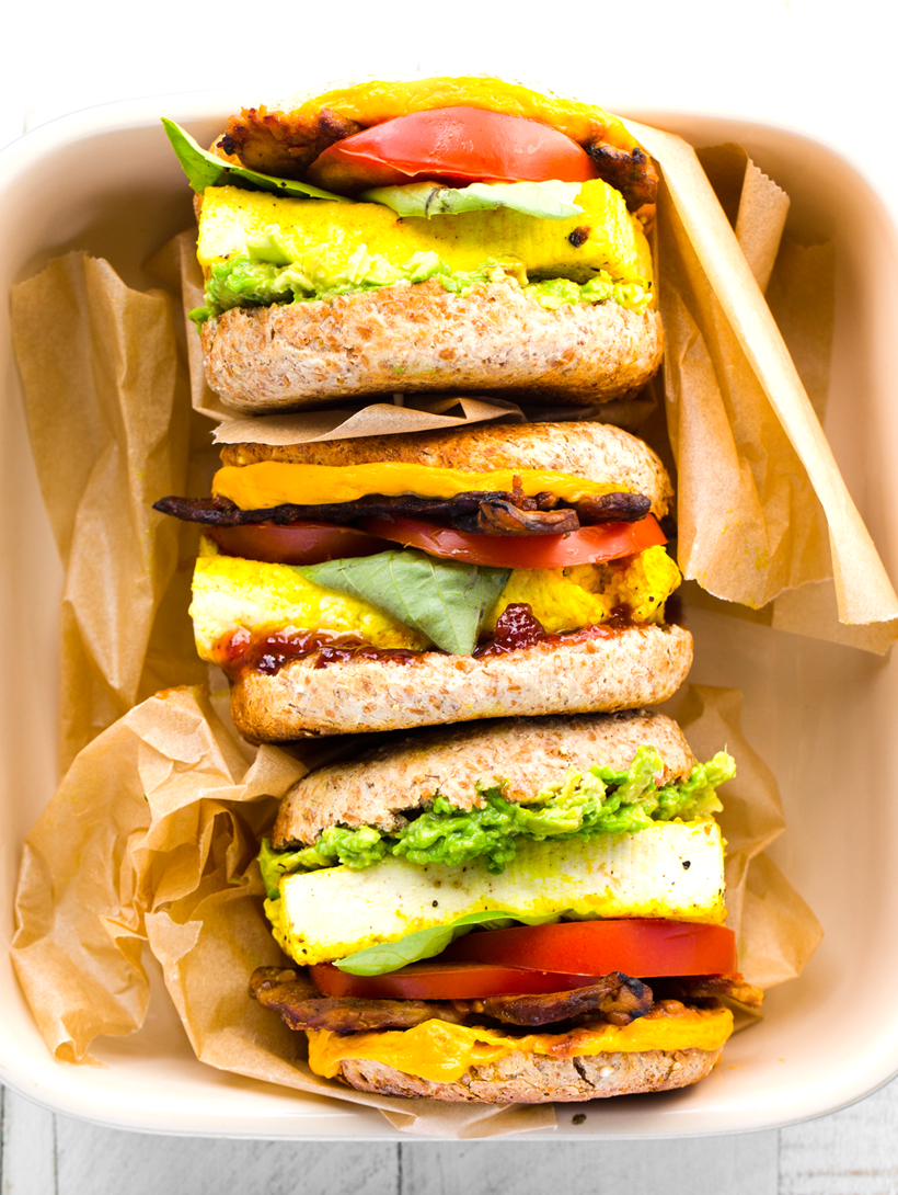 Vegan Breakfast Sandwiches With “Eggy” Tofu And All The Goodies