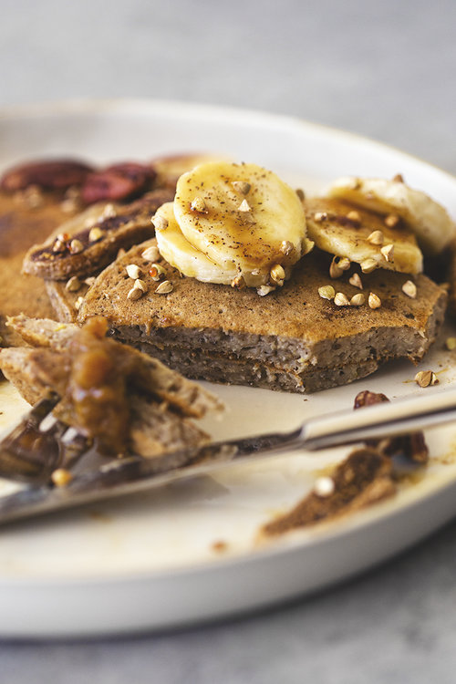 Apple Buckwheat Pancakes With Coconut Caramel Apples