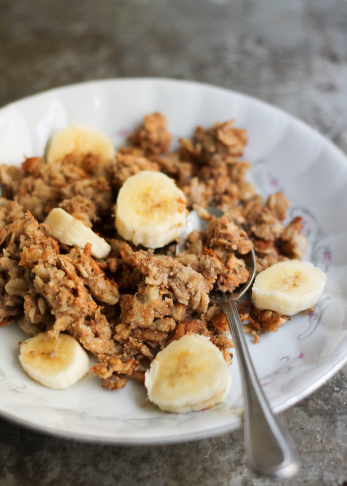 “A healthy make-ahead power breakfast: Peanut Butter and Banana Baked Oatmeal to help start your day off right. Just reheat and eat! Vegan and gluten free.” Recipe: AmbitiousKitchen.