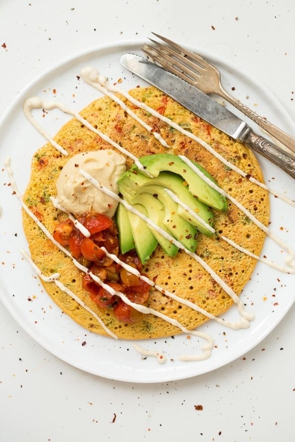 “Today’s recipe features chickpea flour, an ingredient you haven’t seen much on this blog. Chickpea flour is high in protein (7 grams per 1/4 cup according to Cuisine Soleil) and it’s naturally gluten-free making it friendly to our gluten sensitive friends. It also boasts 3 grams of fibre per 1/4 cup. I soon found out what a filling breakfast it makes!” Recipe: OhSheGlows.