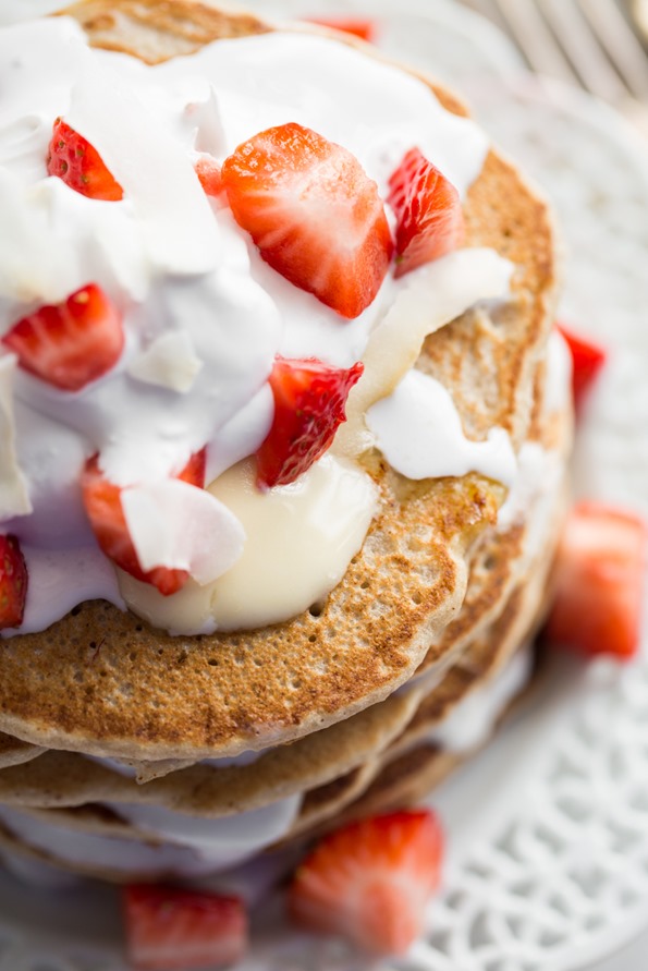Easy Vegan And Gluten Free Pancakes (Coconut Cream + Strawberries)