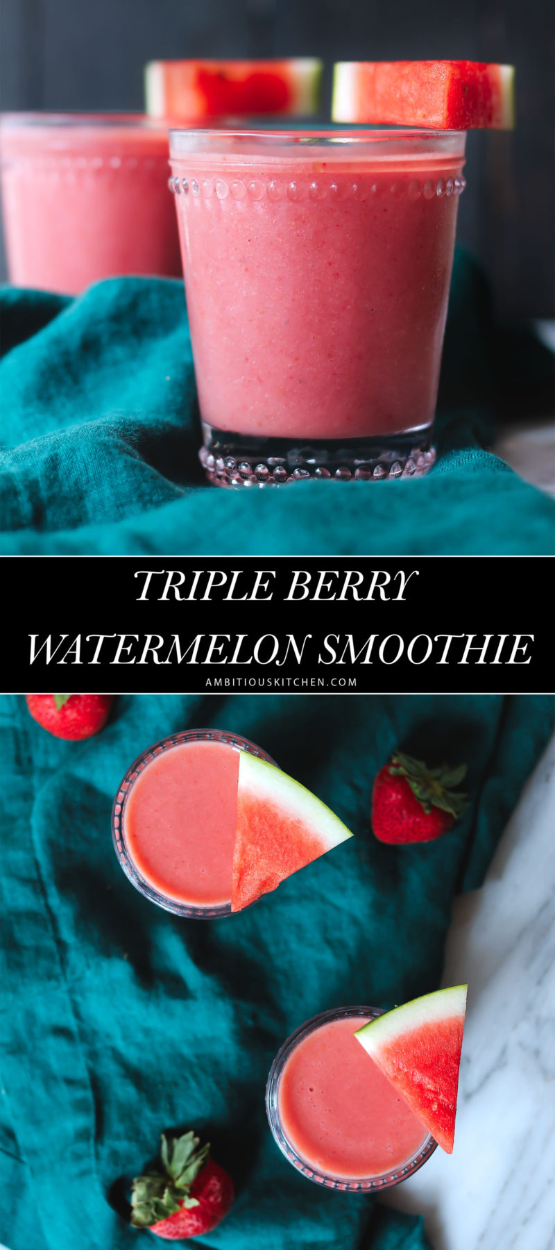 “Well, sometimes it’s just necessary to throw everything in a blender and enjoy a refreshing smoothie. Often, the random ingredients create the most delicious flavors. Case in point: this watermelon smoothie packed with cherries, berries & creamy almond milk.” Recipe: AmbitiousKitchen.
