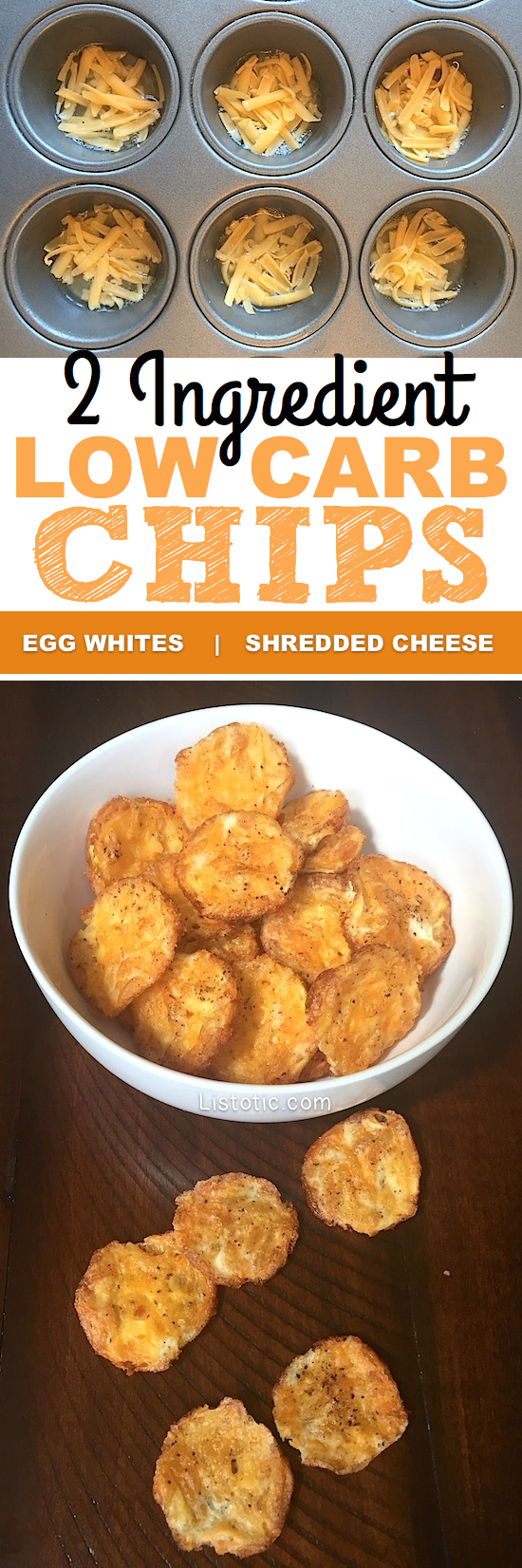 “You certainly wouldn’t guess that these tasty little chips were low carb because they’re SO satisfying! If you like crispy cheese, you’re going to love these. And, yes, they’re made with just 2 simple ingredients! In fact, you probably already have both of them on hand. This is my favorite low carb snack recipe because it actually has a crunch! I might even go as far to say that they’re better than potato chips. Maybe it’s because they don’t have all of the guilt. :)” Recipe from Listotic.com