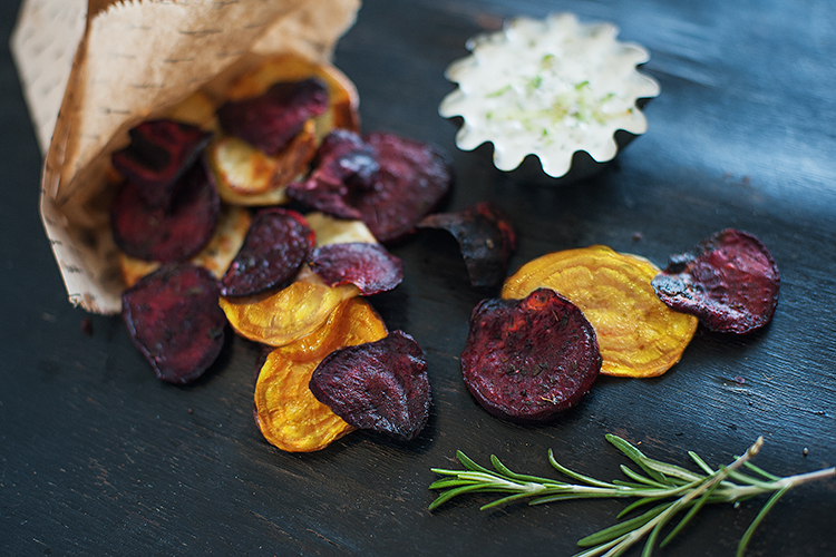 8. Beet Chips with Tzatziki Dipping Sauce