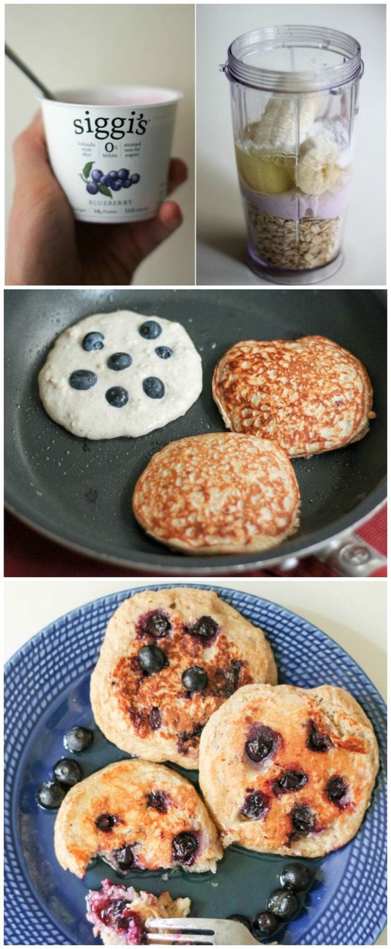19. Oatmeal Blueberry Yogurt Pancakes (gluten free, high protein)