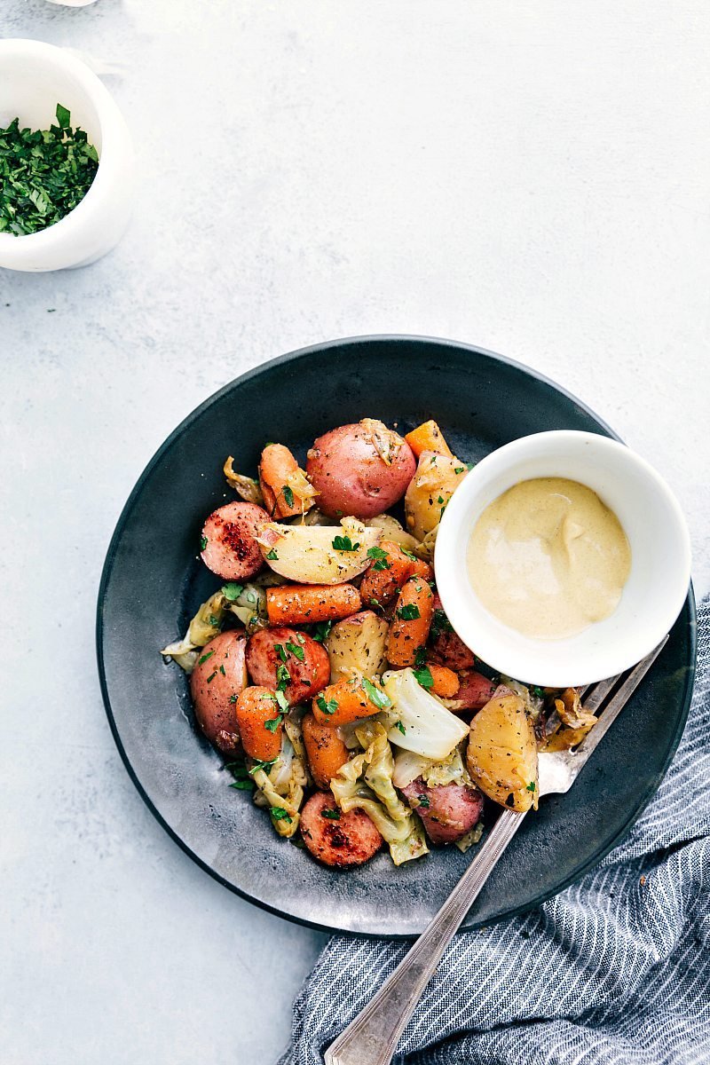 “Say hello to ANOTHER sheet pan sausage and veggies meal. Today we’re adding crispy parmesan smashed potatoes AND a delicious dijonnaise to the mix and I am so excited for you all to give this recipe a go!”. Recipe: ChelseasMessyApron.