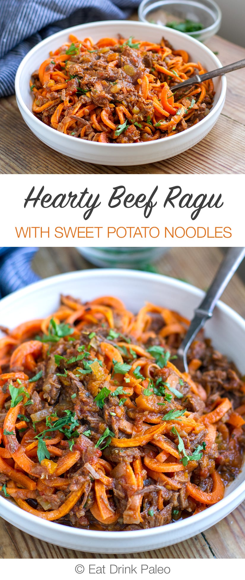 “Sweet potato noodles are great as an alternative to pasta, and serve as a perfect vehicle for this hearty, nourishing beef ragu. This Italian inspired meal is a must-have for any season. “. Recipe: EatDrinkPaleo.