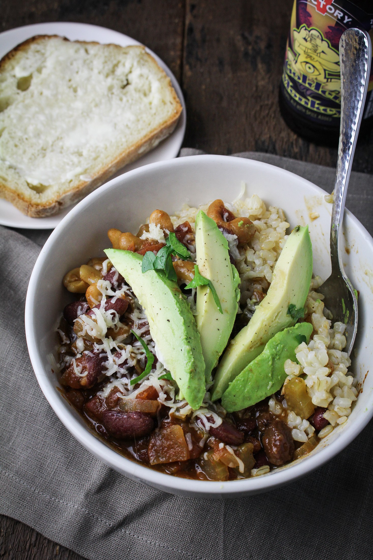 “I love how easy it is to make, and how rich the flavors are – sweet from the raisins and tomatoes, a little bitter from the addition of beer, lots of herbs and spices, crunchy cashews, and of course, tons of shredded cheddar cheese melted on top. It’s all vegetables and beans and spices, but still super flavorful and satisfying – make a big batch and feel good about your dinner all week.” Recipe from KatieAtTheKitchenDoor.