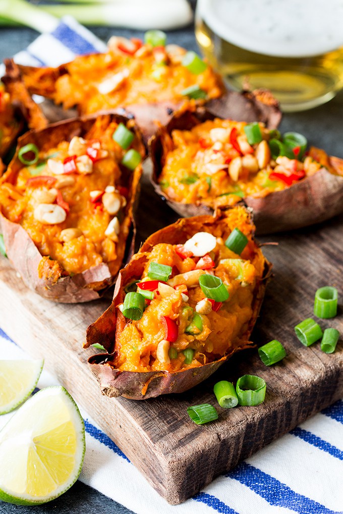 “Extra crunchy sweet potato skins, stuffed with velvety sweet potato and a mixture of crunchy, spicy zingyness. Serve them with a nice leafy salad for lunch” Recipe from KitchenSanctuary.