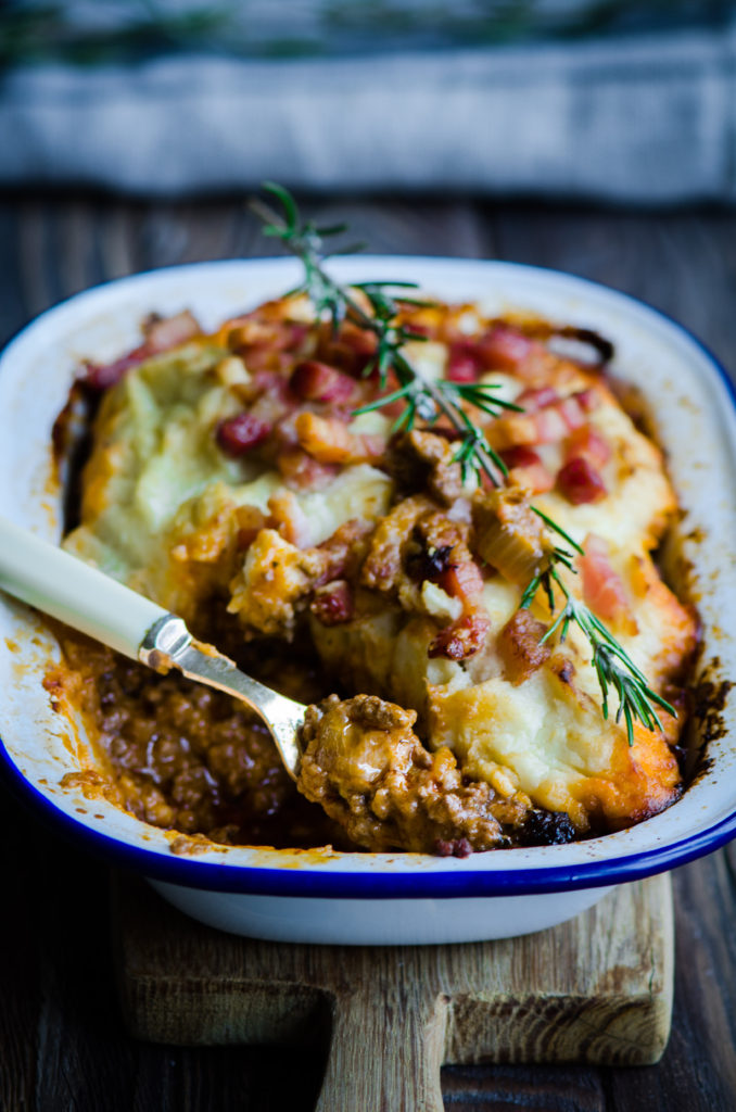 “This time around it is not topped with mash potato and a sprinkle of melted cheese (although feel free to sprinkle if you wish) but rather a healthy thick layer of delicious, healthy and creamy caulimash topped with the Paleo favourite, crispy bacon!” Recipe: Eighty20Nutrition.