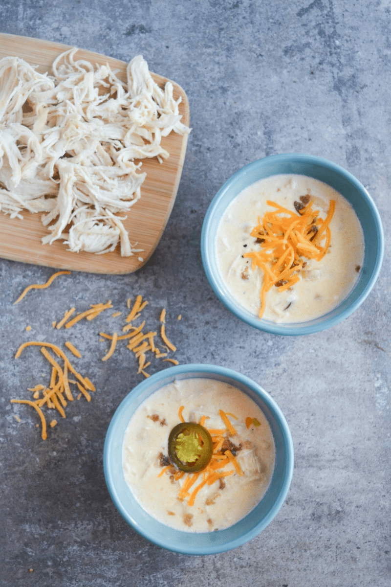 “To prepare the creamy garlic chicken soup, I heated butter in a saucepan and added the shredded chicken. Once the chicken was warmed and coated in butter, I added the cream cheese to the pot and mixed as it melted over medium heat.” Recipe: Ketogasm.