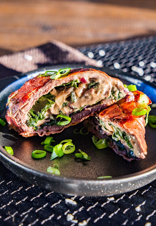 “These stuffed beef rolls are wrapped in prosciutto and stuffed with mushrooms, onions, spinach, cream cheese and other cheeses. They are crispy on the outside and gooey in the middle.” Recipe: Ruled.