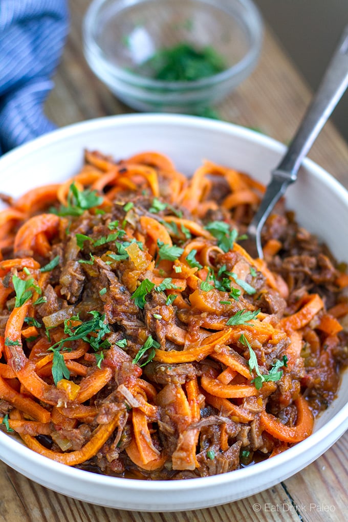 “Sweet potato noodles are great as an alternative to pasta, and serve as a perfect vehicle for this hearty, nourishing beef ragu. This Italian inspired meal is a must-have for any season. ” Recipe: EatDrinkPaleo.
