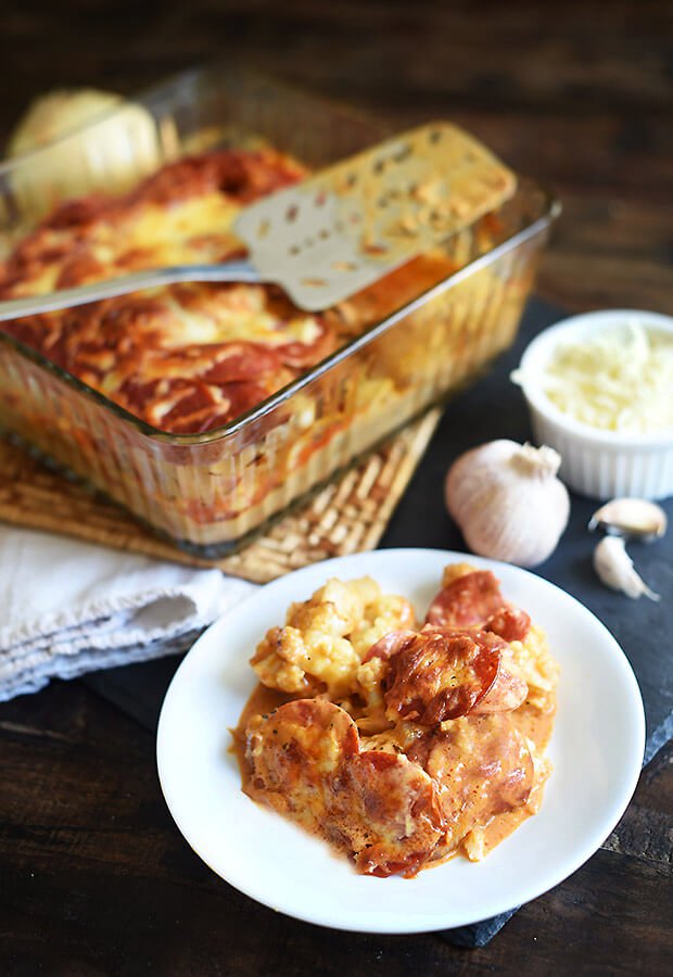“Instead of using carb-loaded pasta as a base, we use steamed cauliflower. Not a cauliflower fan? Try the recipe anyway. It doesn’t taste one bit like cauliflower. Instead, it’s more like macaroni and cheese meets pepperoni pizza. The sauce is rich and creamy with notes of tomato, garlic, basil and oregano. The red pepper flakes add just a little bit of heat and complexity. Add in layers of pepperoni and gooey mozzarella cheese, and this recipe becomes comfort food nirvana.” Recipe: Ruled.