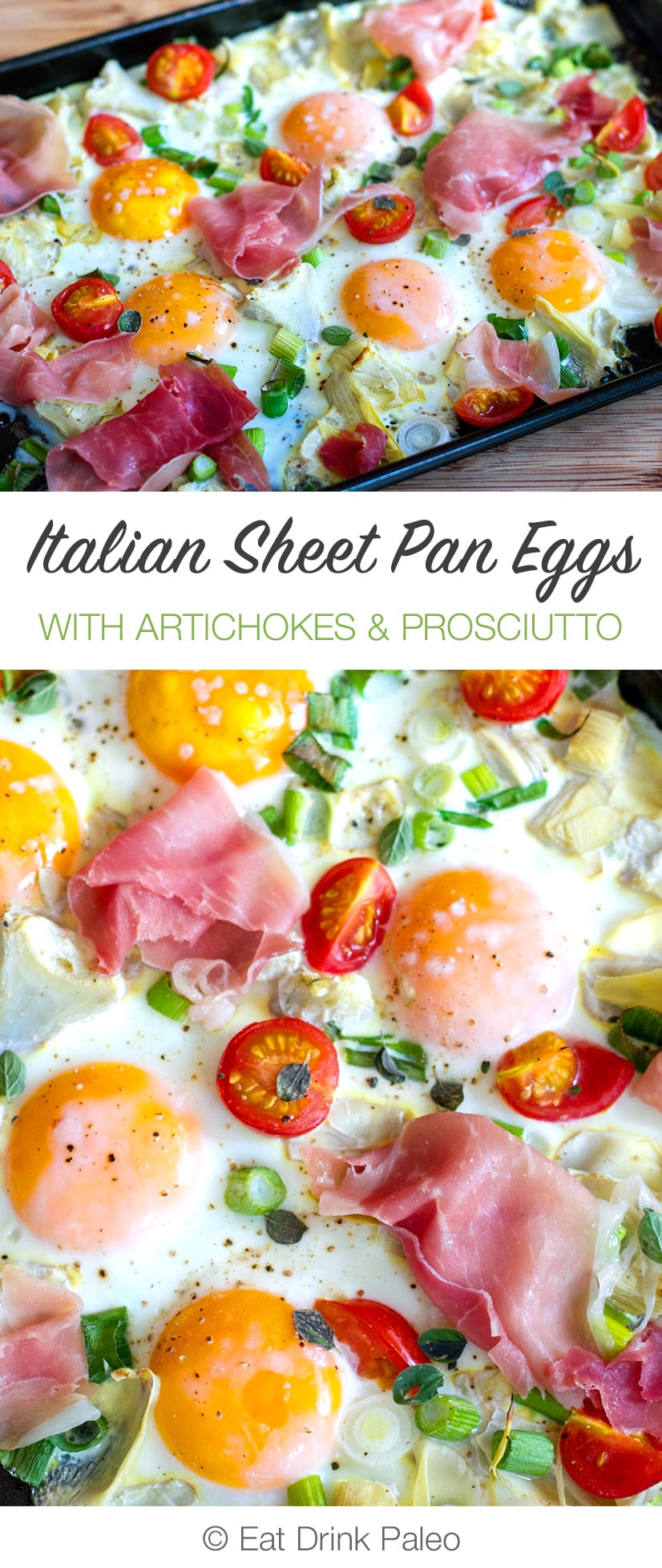 Italian Sheet Pan Eggs With Artichokes & Prosciutto