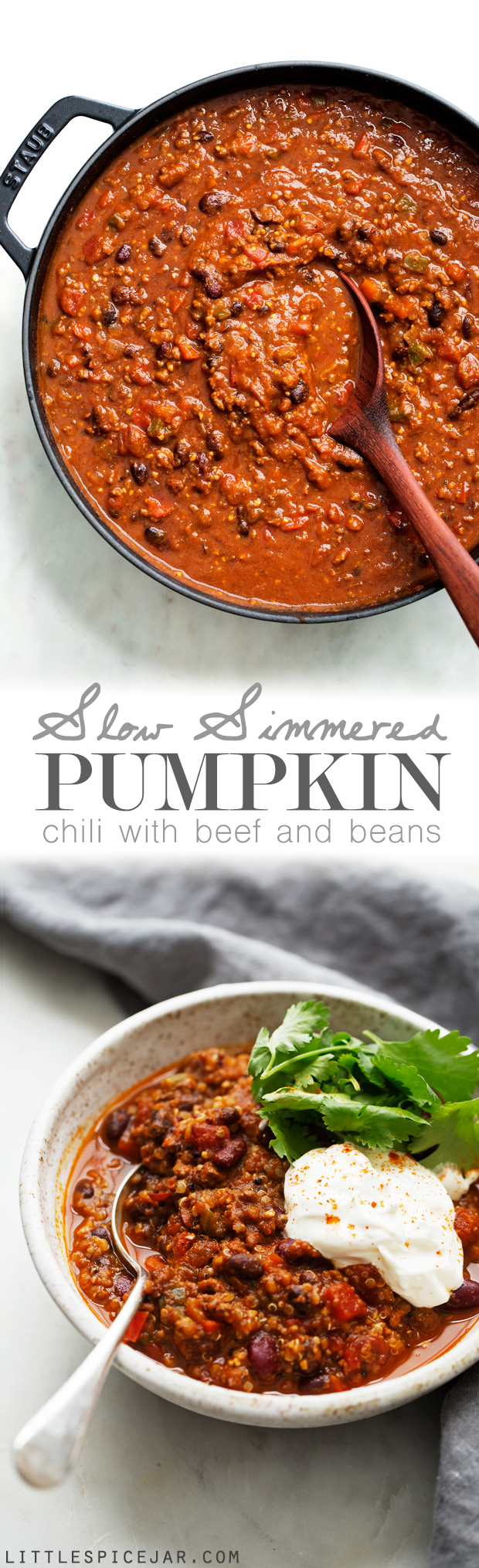“A weekend beef and pumpkin chili that’s slow simmered so the flavors are extra delicious. This is the perfect way to use pumpkin in a hearty chili recipe.” Recipe: LittleSpiceJar. 318 Calories.