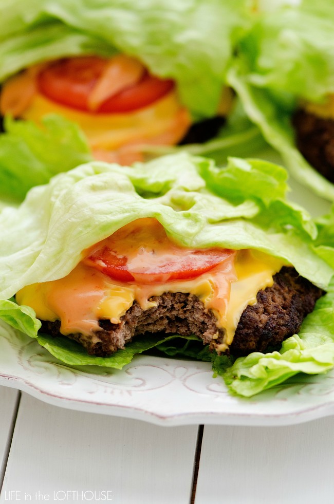 “A flavorful burger topped with cheese, tomato, and a mouth-watering spread is always a winning combo. Wrap it up in a nice piece of lettuce and you won’t even miss the bun. I know you should not use lean ground beef if you want juicy burgers, but when I’m trying to watch calories I use 93% lean beef for these and they are still amazing as ever. I add a few extra things that make these burgers so yummy!” Recipe: LifeInTheLoftHouse.