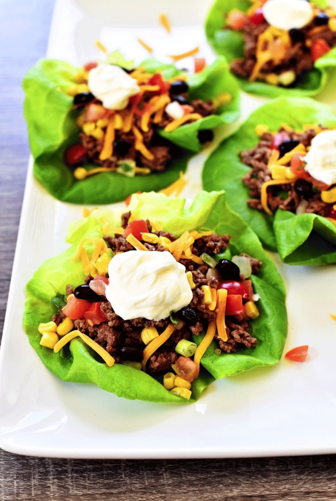 “It’s amazing how something so healthy and can taste this incredible! I like to fill my TACO LETTUCE WRAPS with seasoned lean ground beef, onion, corn, black beans, cheese and lots and lots of taco sauce. These tacos are ready in hardly any time at all. I make them on weeknight dinners all the time.” Recipe: LifeInTheLoftHouse.