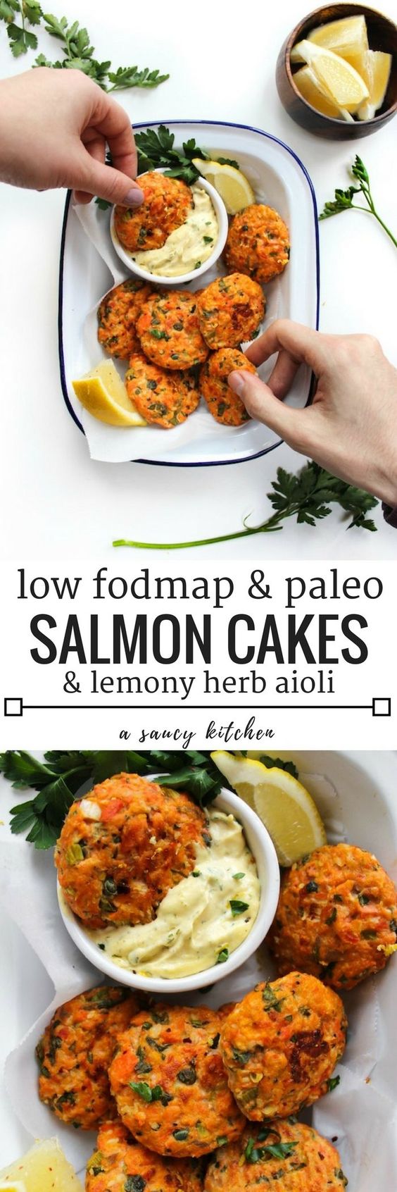 Mini Paleo Salmon Cakes & Lemon Herb Aioli