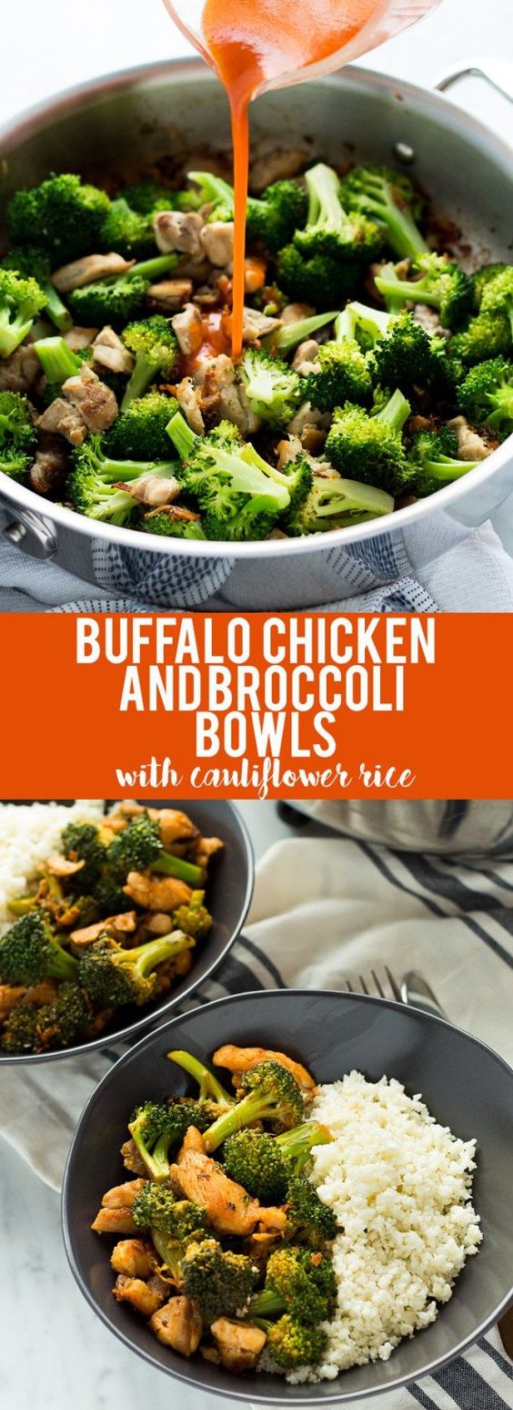 “This Buffalo Chicken and Broccoli Bowl is fast, easy and flavorful. Chicken and broccoli in a buffalo sauce, served over cauliflower rice makes a gluten-free, low carb, high protein, paleo and whole 30 friendly meal!” Recipe: foxandbriar.com