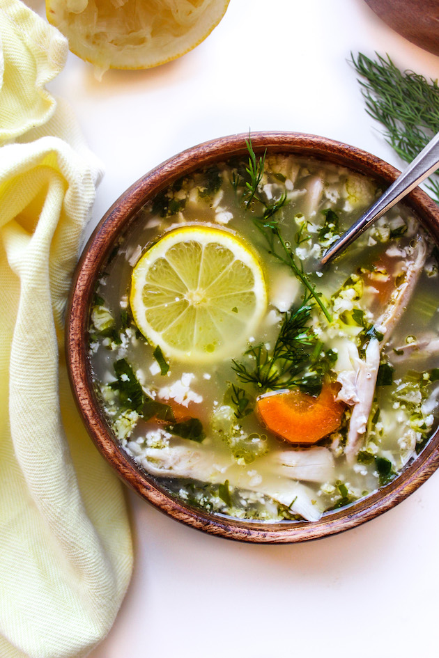 Lemon Chicken Soup With Cauliflower Rice