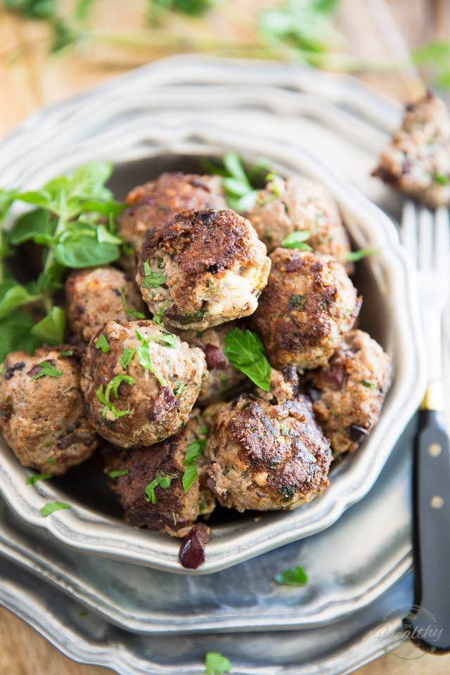 “These guys are so friggin’ tasty, it’s not even funny. In fact, they have so much flavor, thanks to the addition of chopped olives, feta cheese, garlic and fresh oregano, they don’t need much of anything else. No ketchup or dipping sauce required here!” Recipe: TheHealthyFoodie.