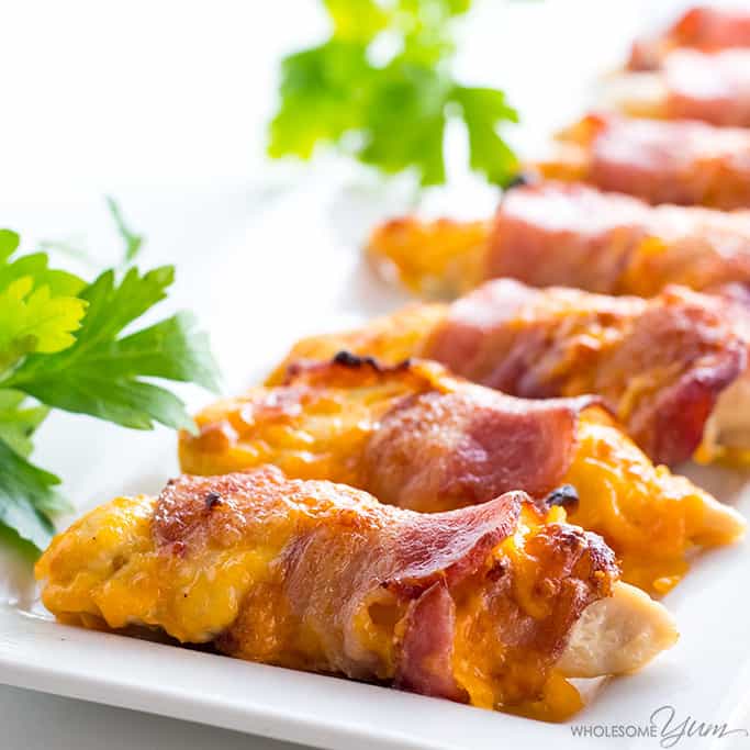 “This easy baked bacon wrapped chicken tenders recipe needs just 3 common ingredients – chicken, bacon, and cheese! Ready in under 30 minutes.” Recipe: WholesomeYum.