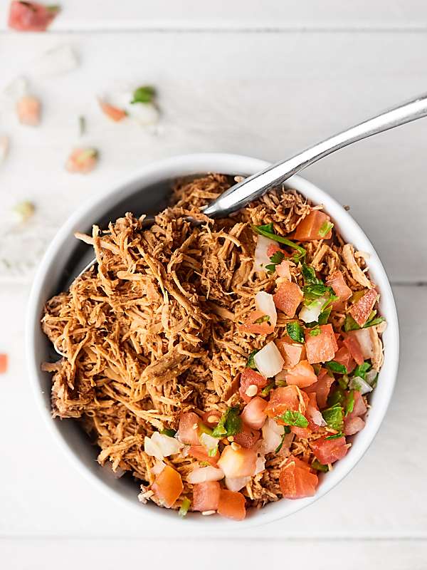 “One of the easiest, healthiest, and most versatile dinners that you’ll make all year, this Mexican Instant Pot or Slow Cooker Chicken is going to become a staple in your regular meal prep routine! It’s high in protein, it’s low in calories, and it only requires 5 ingredients!” Recipe: TheSeasonedMom.
