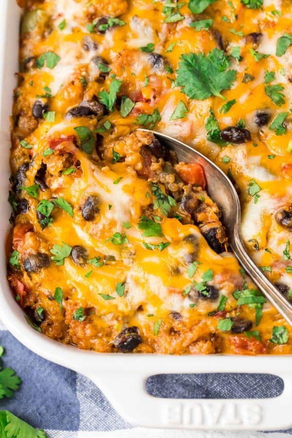 “A healthy, easy Mexican chicken casserole recipe your entire family will love! Made with quinoa, fresh veggies, black beans, and cheese, this creamy, cheesy Mexican casserole has received dozens of glowing reviews. You’ll love it too!” Recipe: WellPlated.
